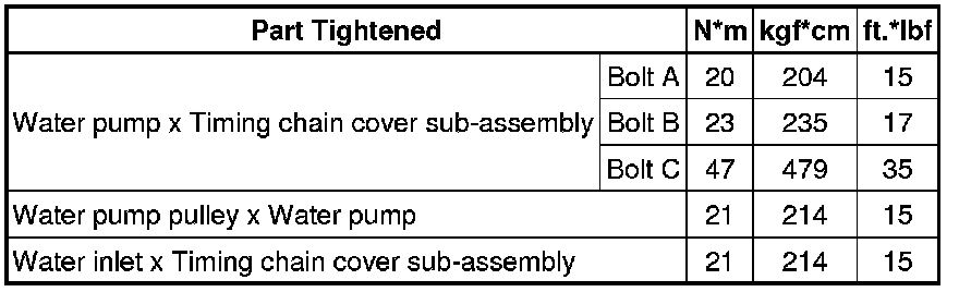 SPECIFICATIONS: 2UR-GSE COOLING: TORQUE SPECIFICATIONS