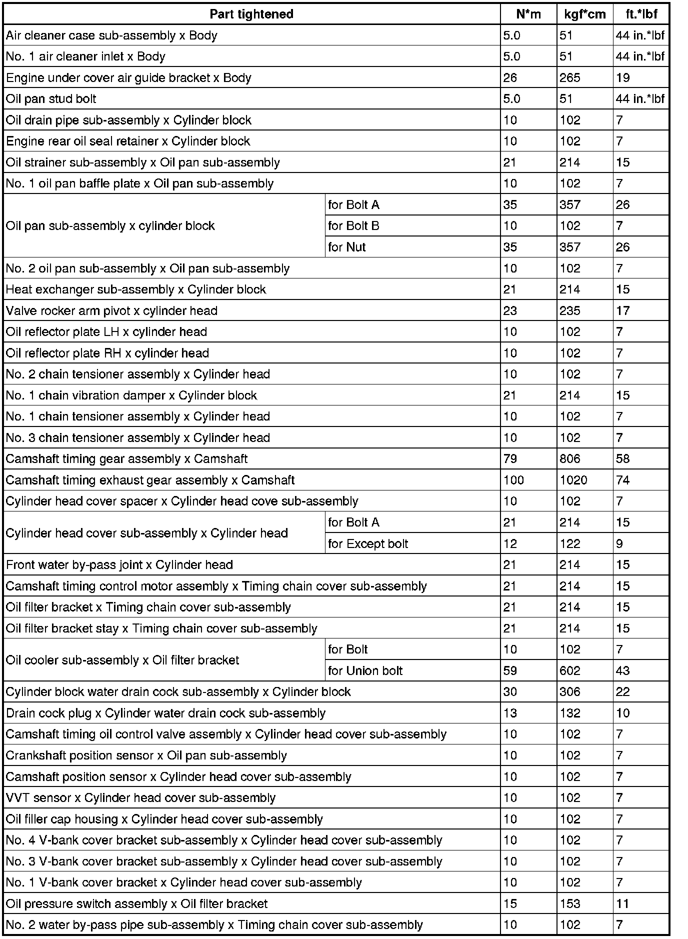 SPECIFICATIONS: 2UR-GSE ENGINE MECHANICAL: TORQUE SPECIFICATIONS