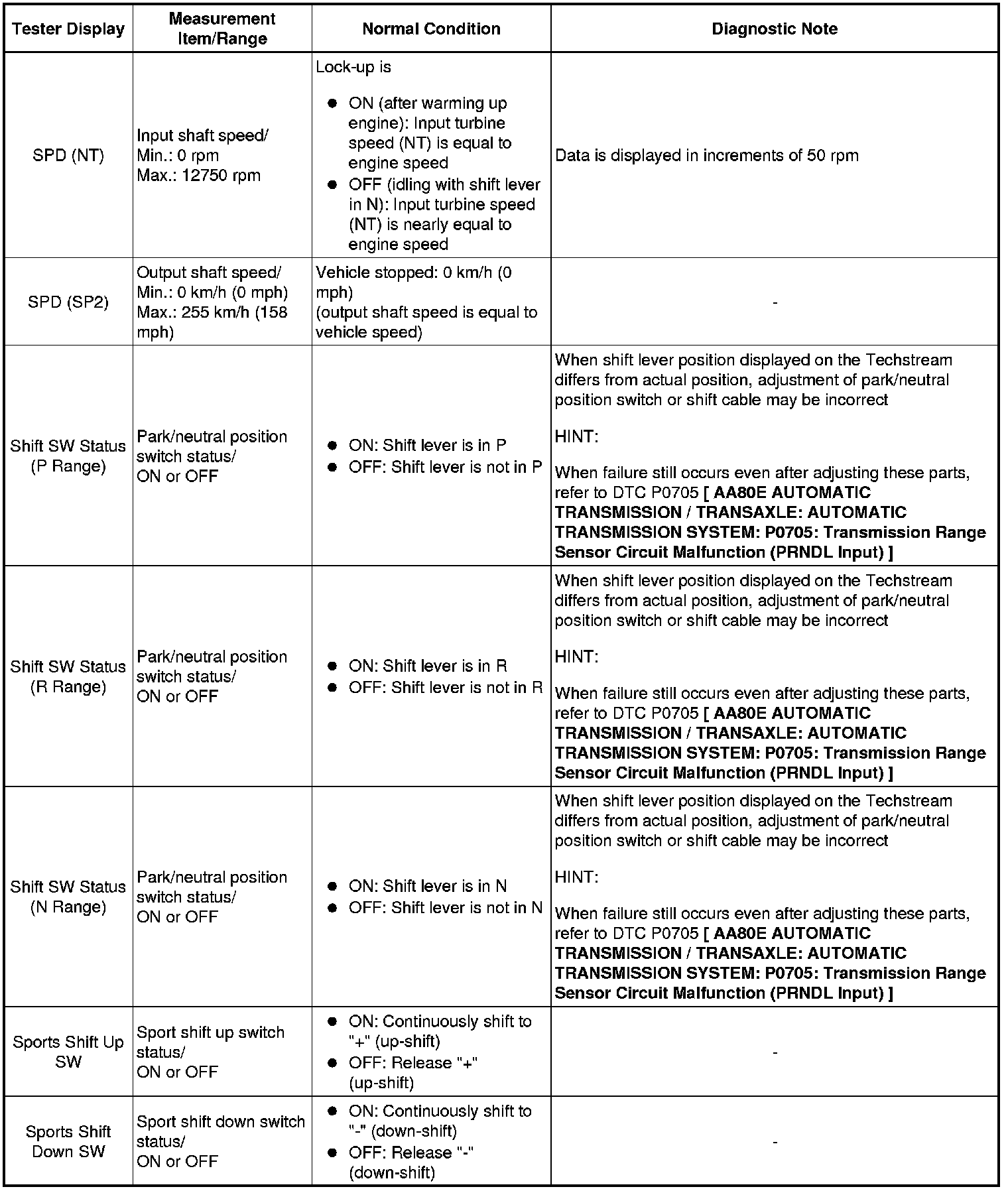 AA80E AUTOMATIC TRANSMISSION / TRANSAXLE: AUTOMATIC TRANSMISSION SYSTEM: DATA LIST / ACTIVE TEST