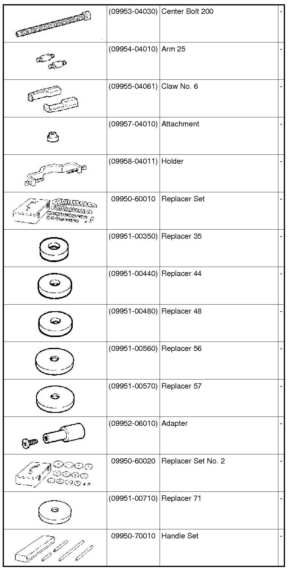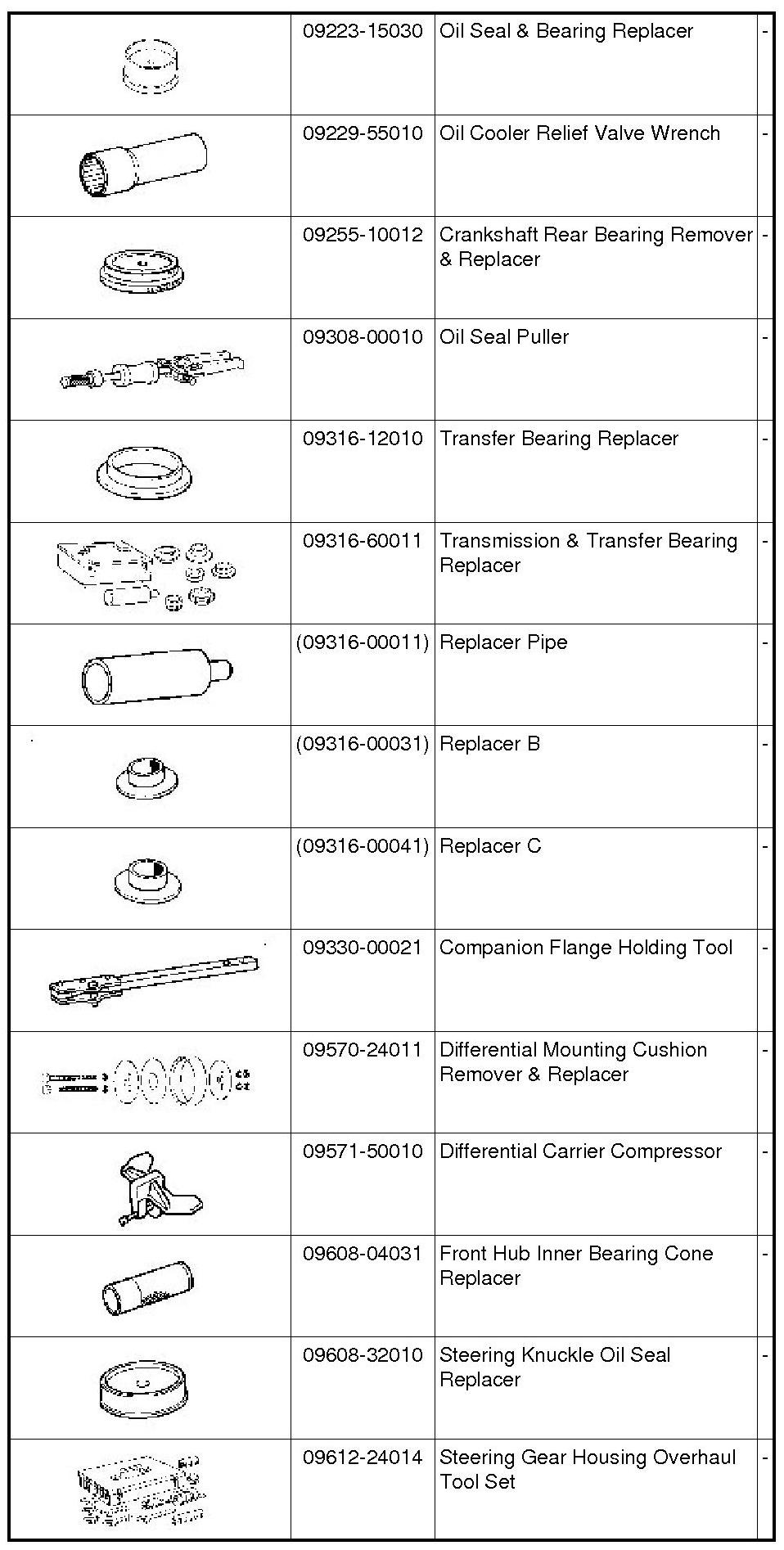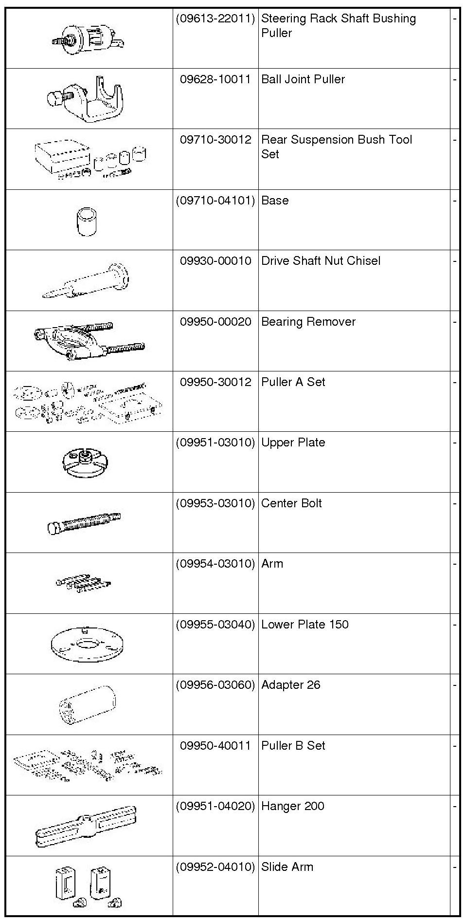 PREPARATION: AXLE AND DIFFERENTIAL: SST