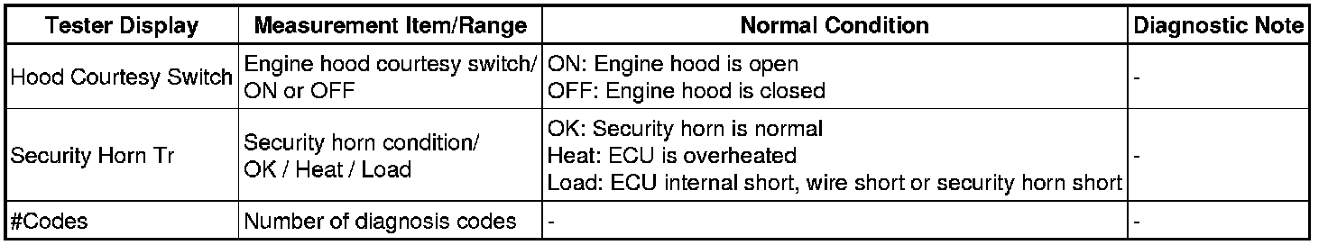 THEFT DETERRENT: THEFT DETERRENT SYSTEM: DATA LIST / ACTIVE TEST