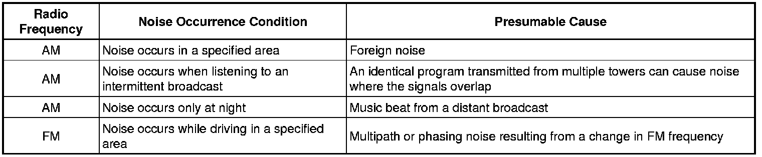 Technicians must have a clear understanding about each customer noise complaint. Use the following table to diagnose noise problems.