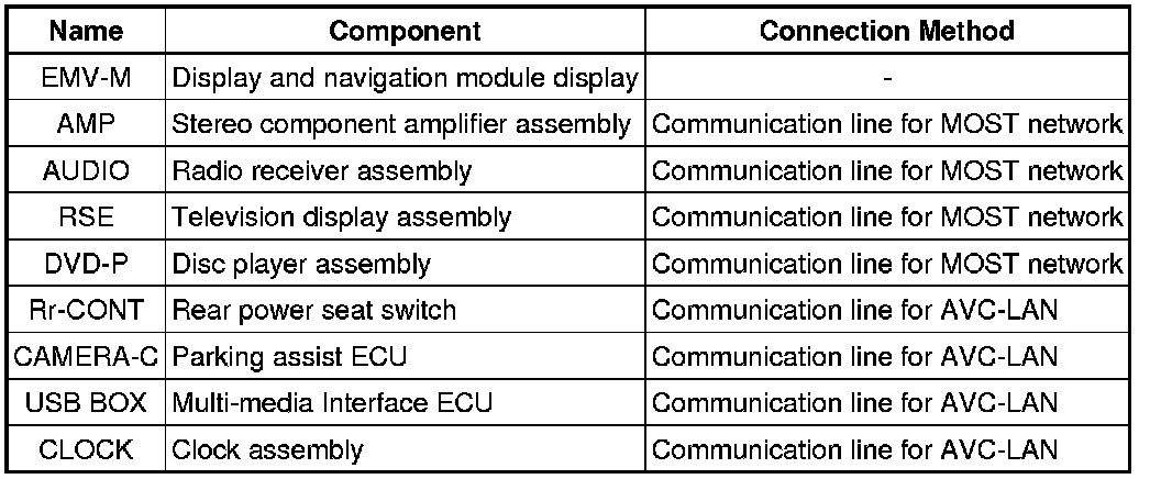 (1) Components of the navigation system communicate with each other via the AVC-LAN.