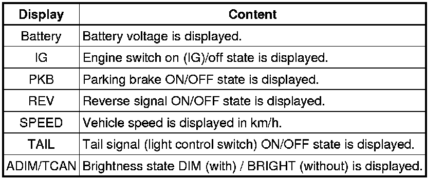 (4) Vehicle Signal Check Mode Screen