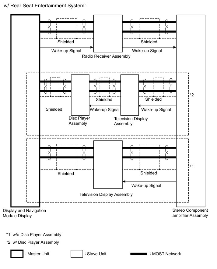 (4) MOST communication lines connect each slave unit centering around the master unit to form a MOST network ring.