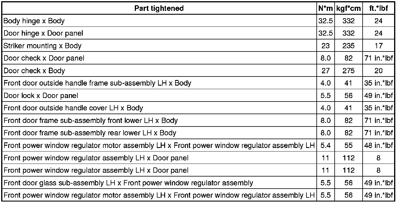 / DOOR: TORQUE SPECIFICATIONS