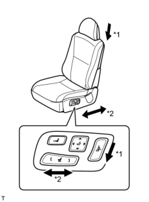 (5) Operate the power seat switch and check that the seat slides forward and rearward and that the buzzer does not sound.*2