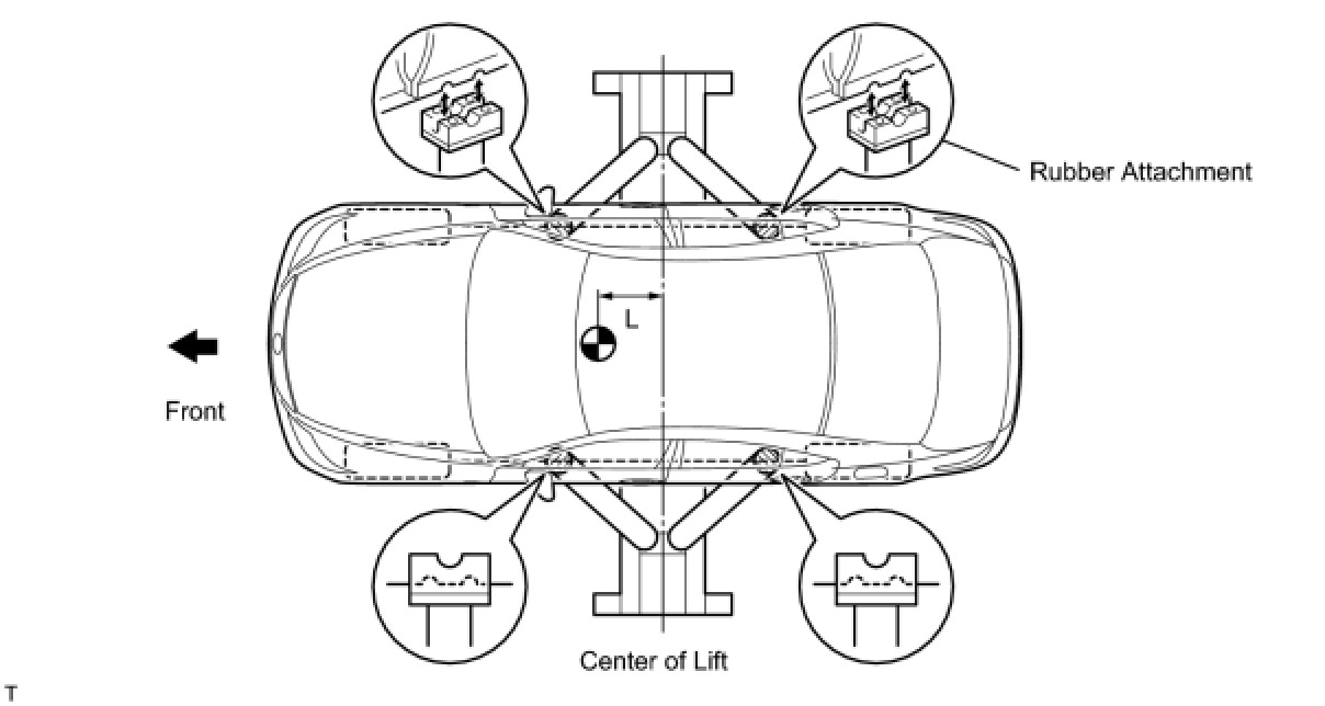 (d) When using the lift, its center should be as close to the vehicle's center of gravity as possible (length of "L" in the illustration should be as short as possible).