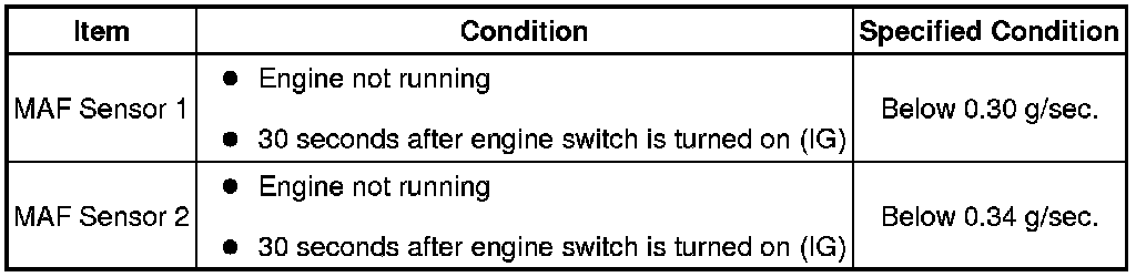 If the result is within the specified range, inspect the mass air flow meter sub-assembly Inspection.