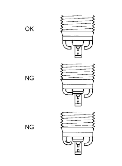 * When performing the inspection, be sure to ground the hexagonal portion or the threaded portion of the spark plug.
