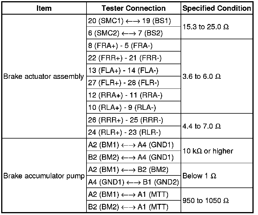 SERVICE SPECIFICATIONS: BRAKE CONTROL: SERVICE DATA