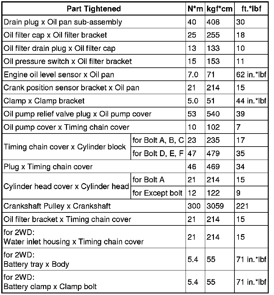 SERVICE SPECIFICATIONS: 1UR-FSE LUBRICATION: TORQUE SPECIFICATIONS