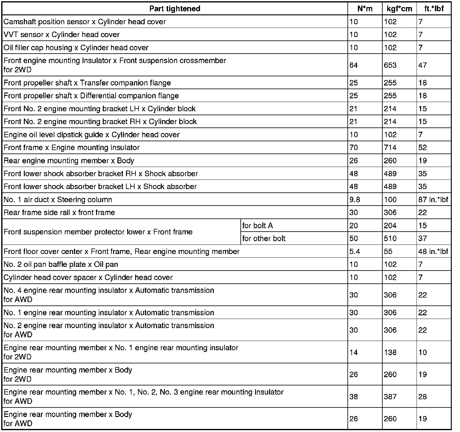 SERVICE SPECIFICATIONS: 1UR-FSE ENGINE MECHANICAL: TORQUE SPECIFICATIONS