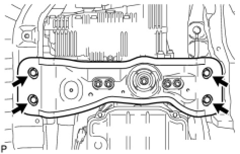 (i) Remove the 4 bolts and disconnect the rear engine mounting member.