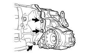 (j) Slowly tilt the automatic transmission assembly away from the vehicle.
