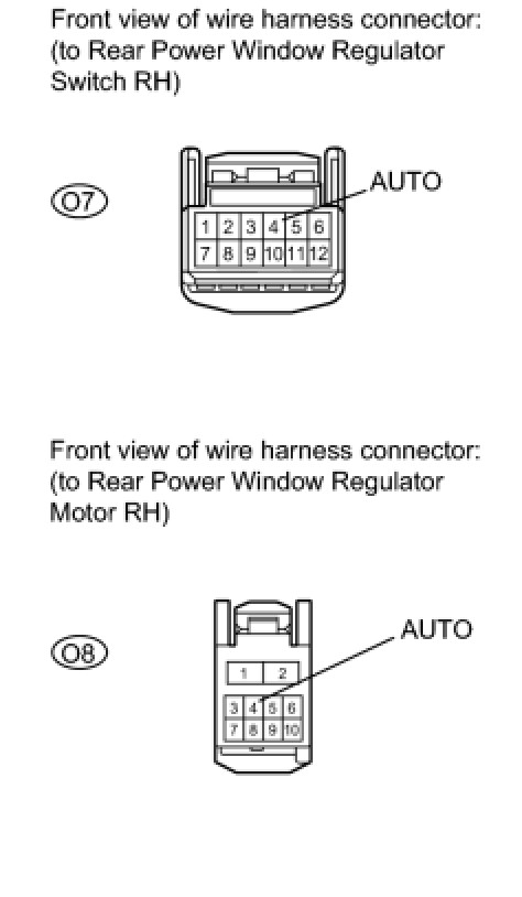 NG -- CHECK HARNESS AND CONNECTOR (REAR POWER WINDOW REGULATOR SWITCH RH - REAR POWER WINDOW REGULATOR MOTOR RH)