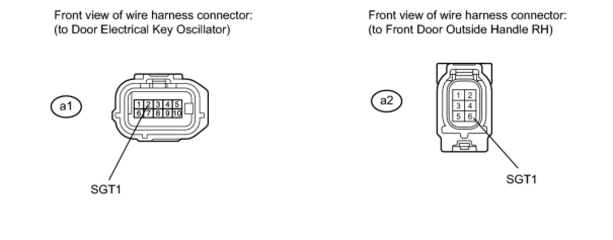 6. CHECK HARNESS AND CONNECTOR (DOOR ELECTRICAL KEY OSCILLATOR - FRONT DOOR OUTSIDE HANDLE RH)
