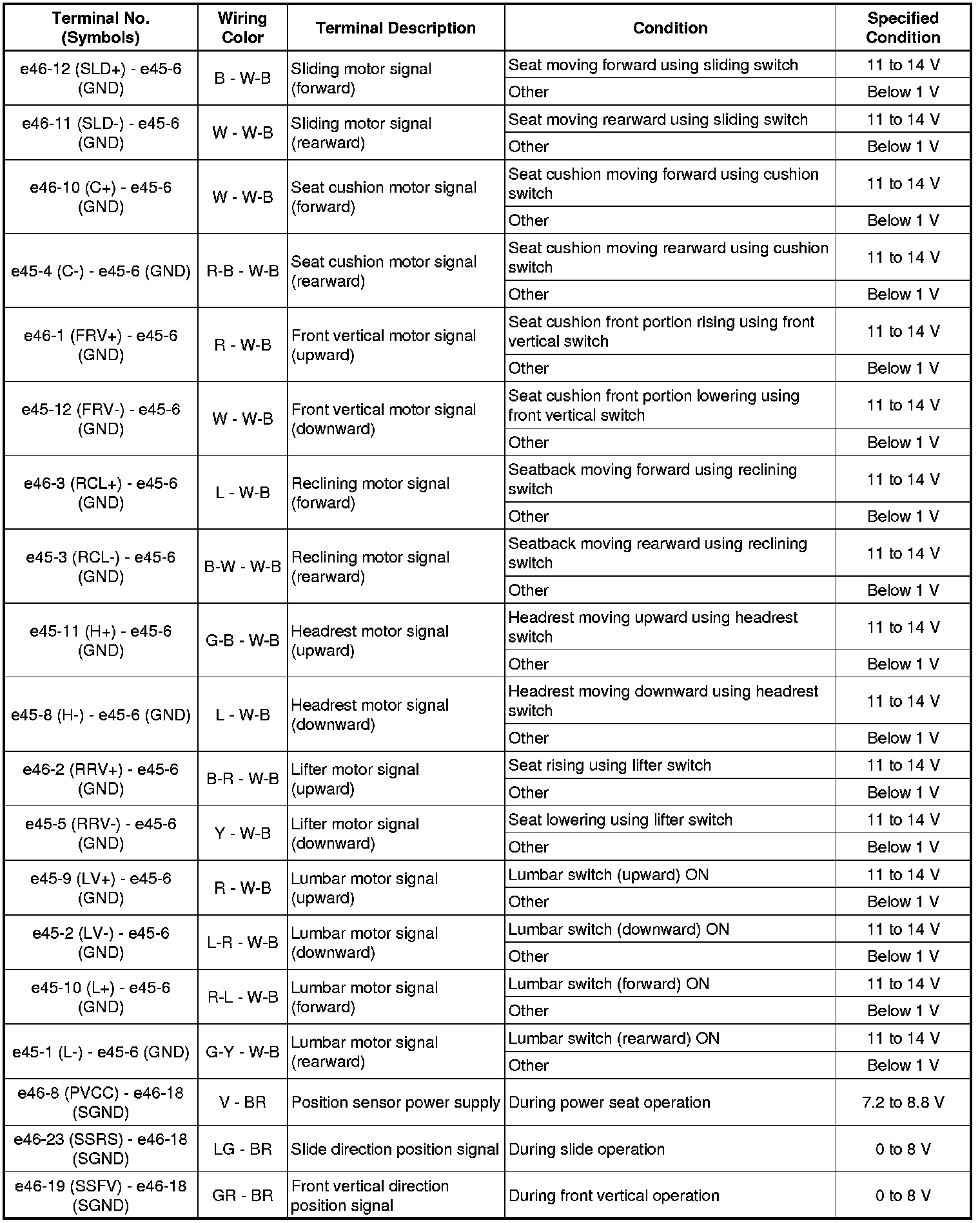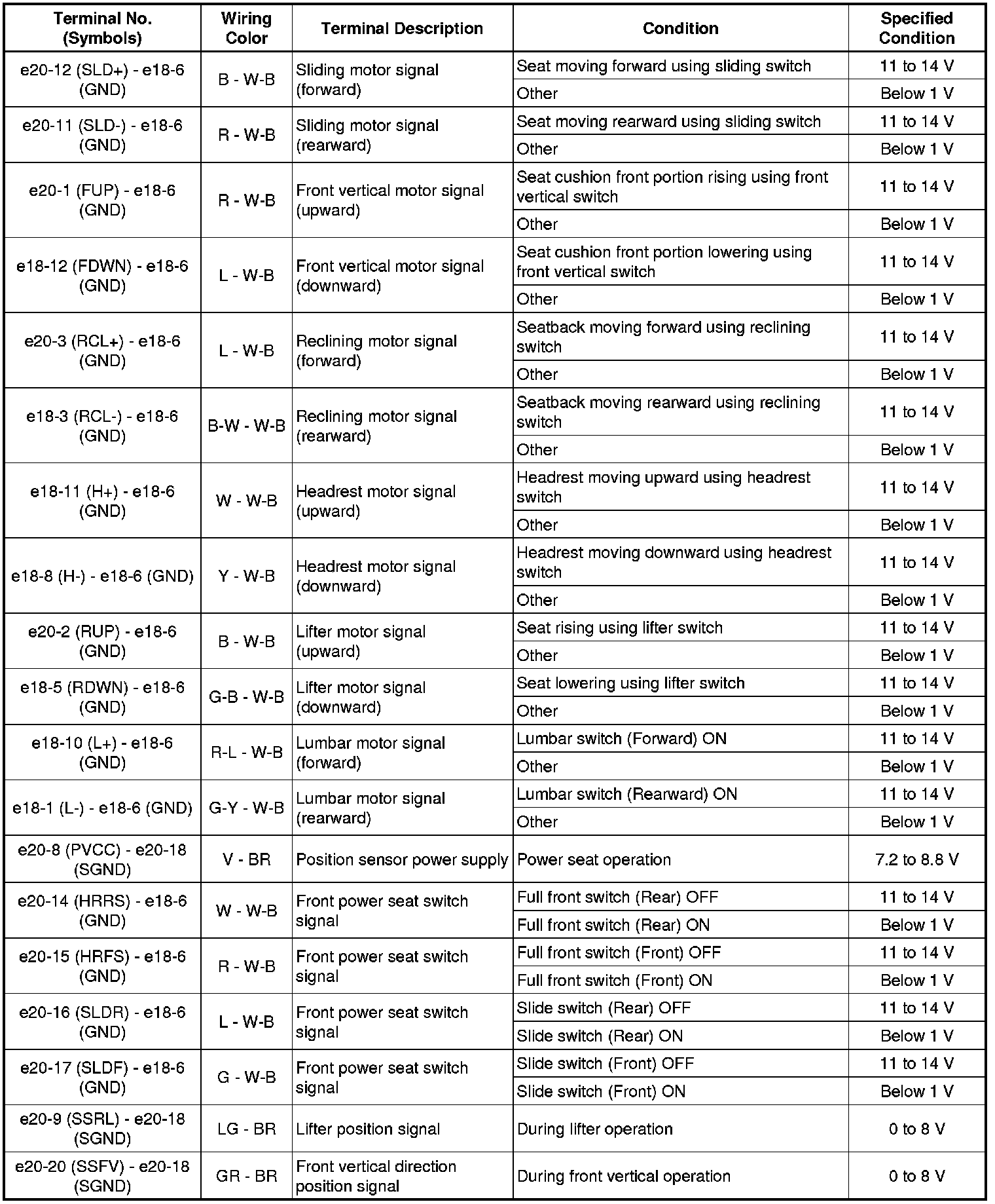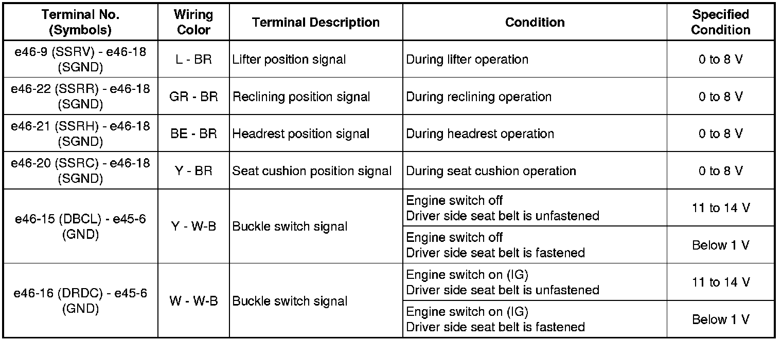 SEAT: FRONT POWER SEAT CONTROL SYSTEM: TERMINALS OF ECU