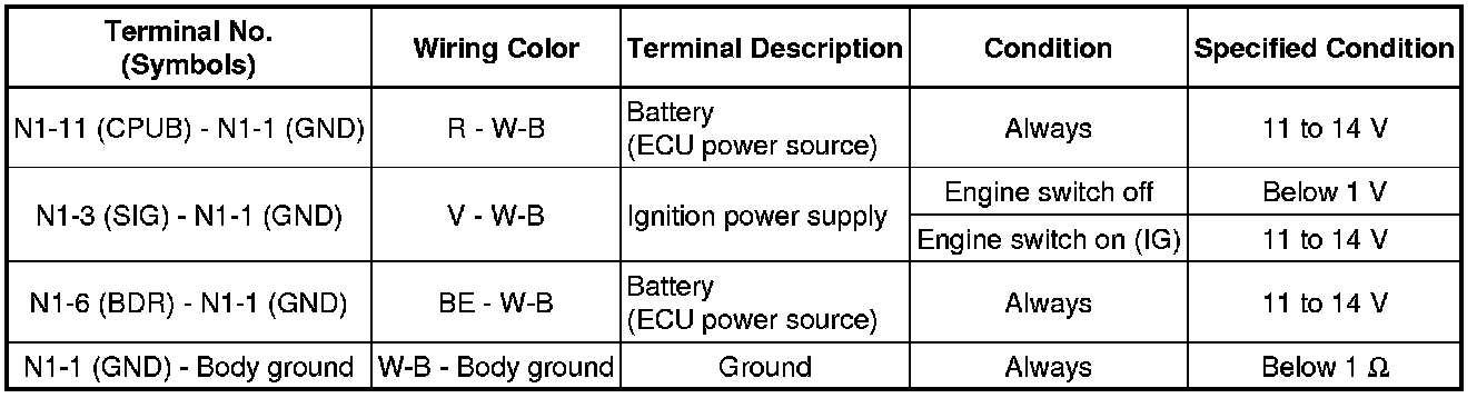 (c) Reconnect the N1 ECU connector.
