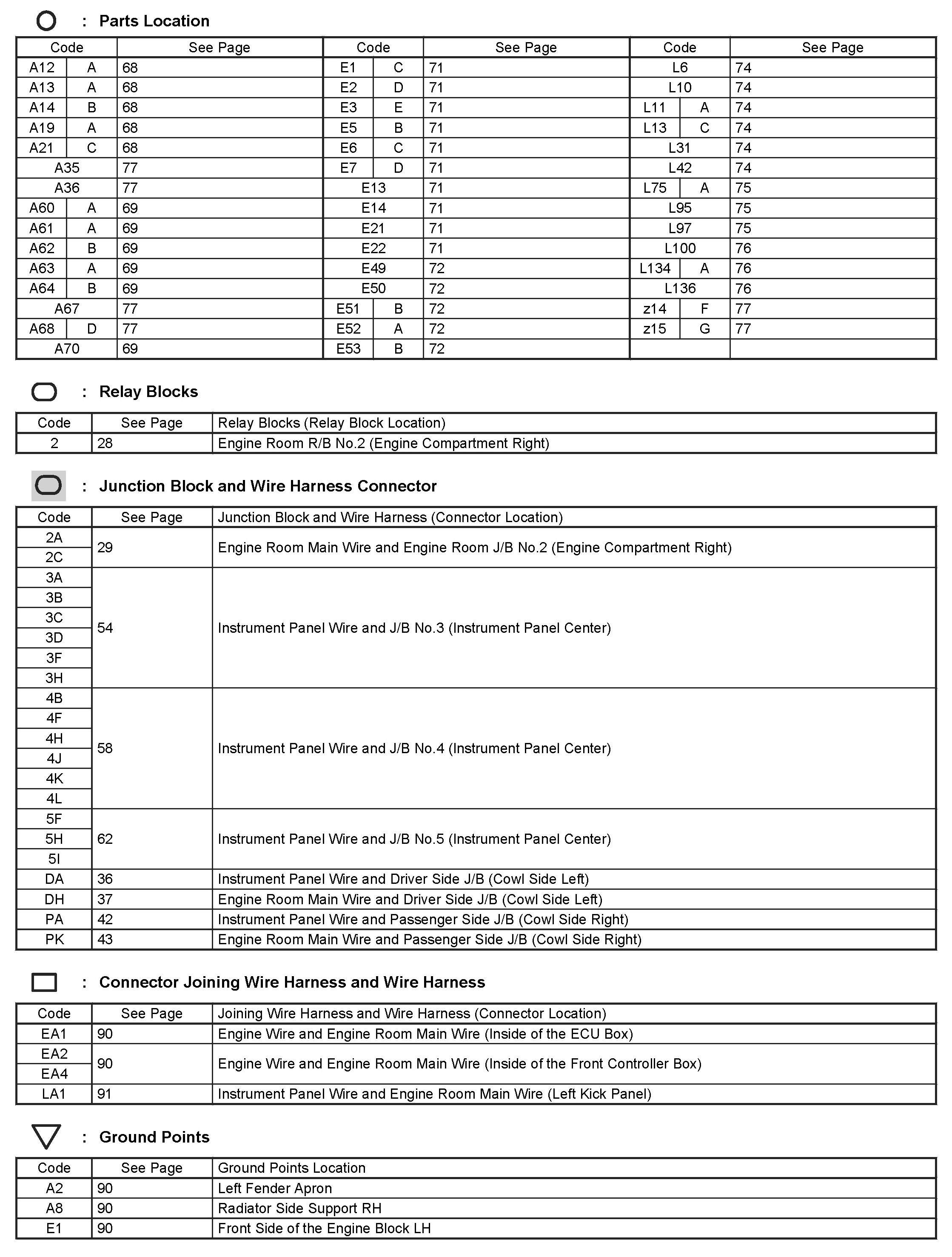 Connector Views: Diagrams of the connectors referred to within these diagrams can be found at Connector Views by Connector Number. Connector Views By Connector Number