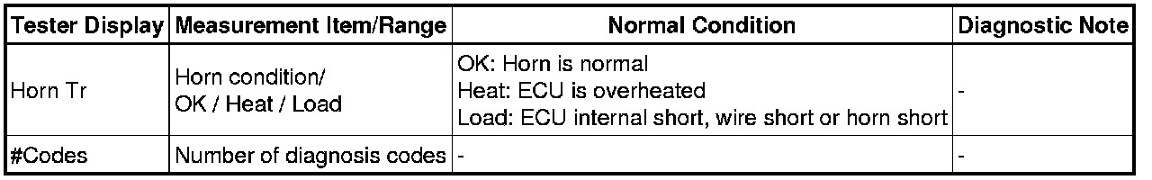 HORN: HORN SYSTEM: DATA LIST / ACTIVE TEST