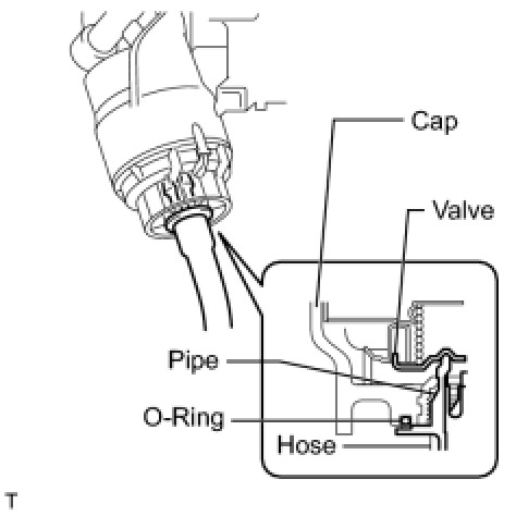 (d) Check that oil is drained from the oil filter. Then disconnect the pipe and remove the O-ring, as shown in the illustration.