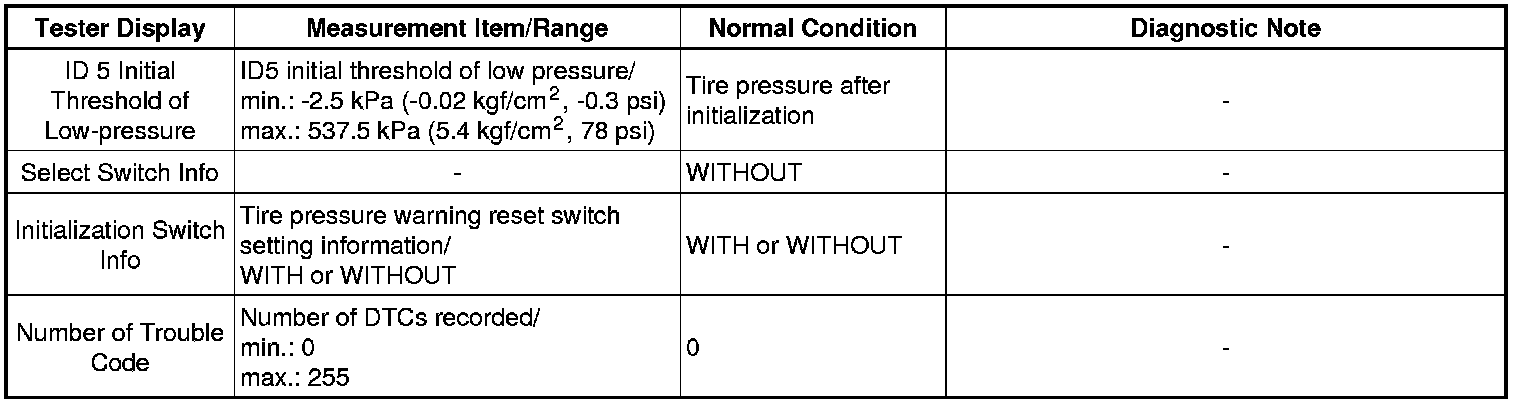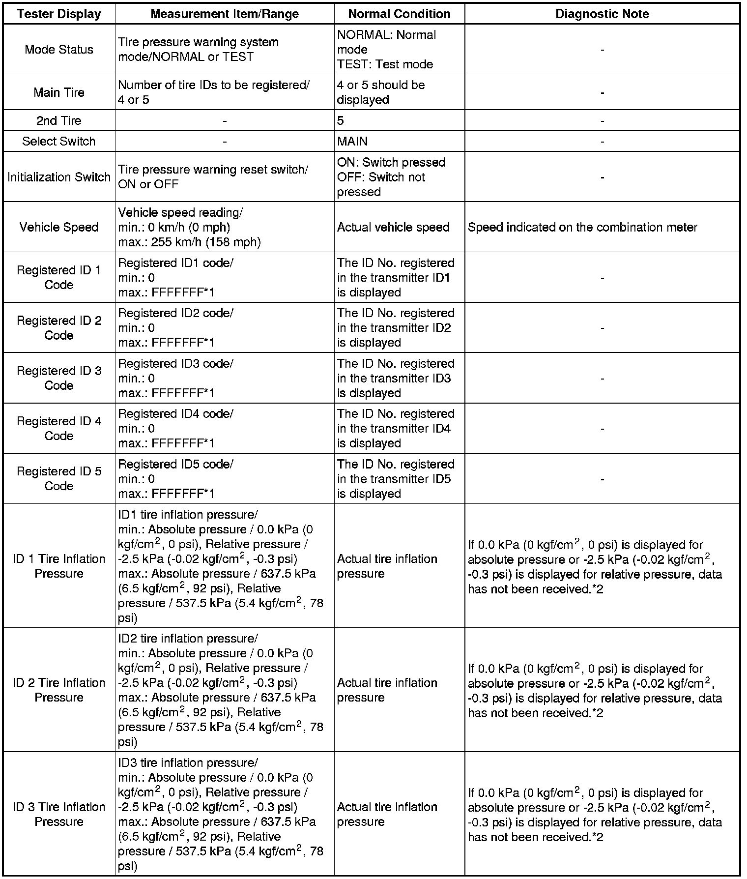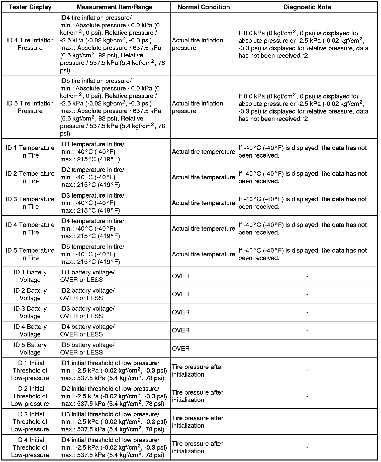 TIRE AND WHEEL: TIRE PRESSURE WARNING SYSTEM: DATA LIST / ACTIVE TEST