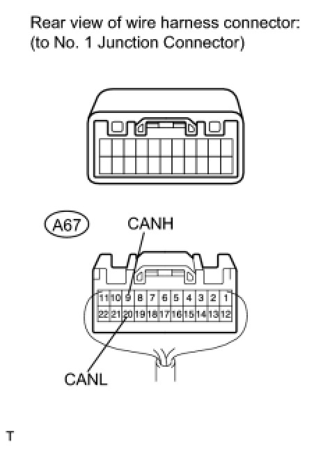 (a) Disconnect the A67 No. 1 junction connector connector.
