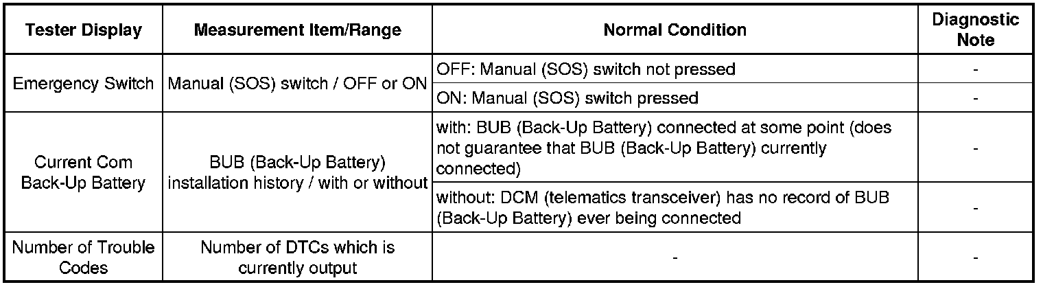 CELLULAR COMMUNICATION: SAFETY CONNECT SYSTEM: DATA LIST / ACTIVE TEST
