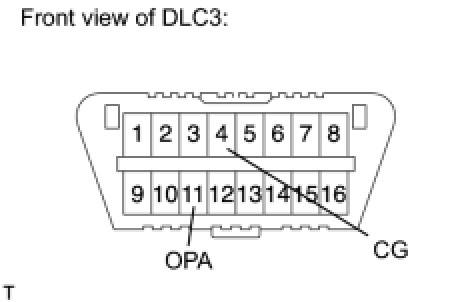 (b) If the vehicle must be raised with its engine running, connect terminals 11 (OPA) and 4 (CG) of the DLC3 to stop the vehicle height control operation of the suspension control ECU.