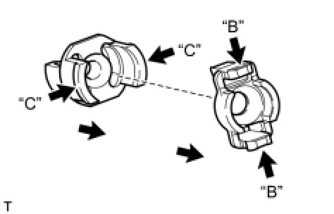 Pinch "B" to disconnect the holder air connector clip and pull it out from the No. 1 connector. Pinch "C" to disconnect the No. 1 connector and pull it out from the housing.