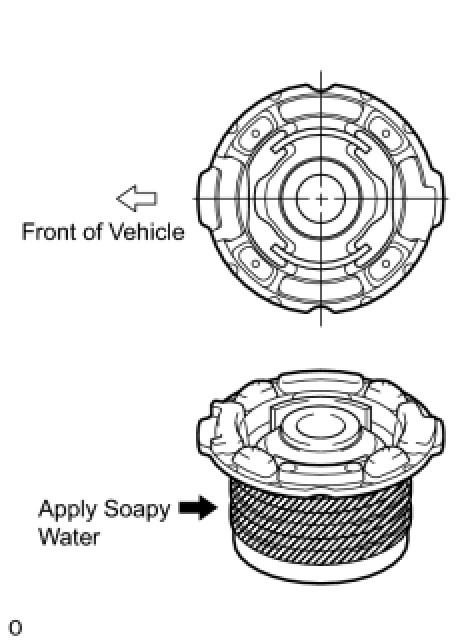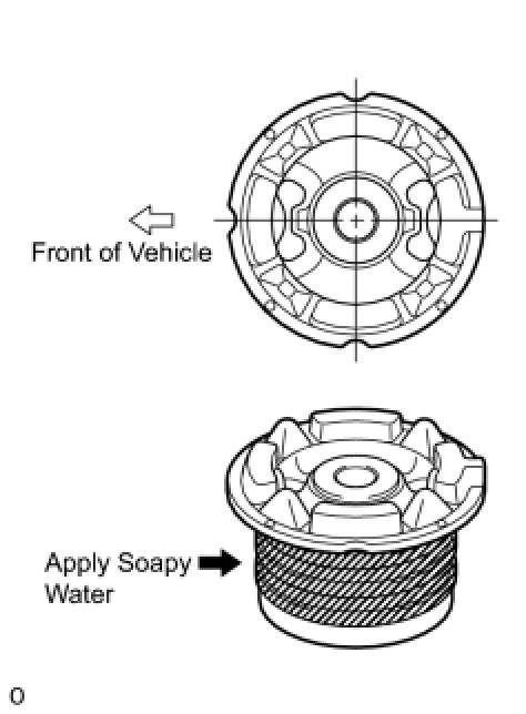 (a) Apply soapy water around the outside of a new rear suspension member body mounting cushion.