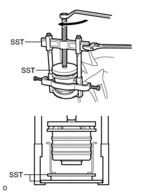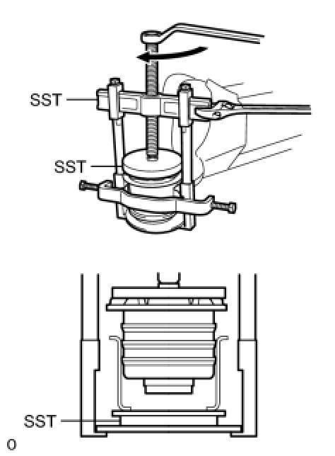 (c) Using SST, press in the body mounting cushion.