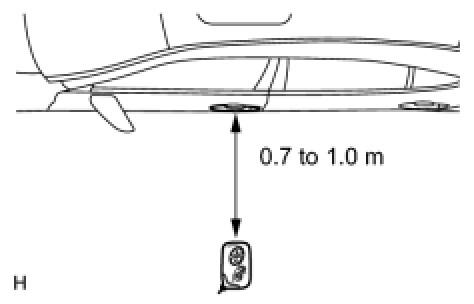 (2) Step 2: Check that when the key is brought within 0.7 to 1.0 m (2.30 to 3.28 ft.) of the vehicle, the system enters unlock standby mode.