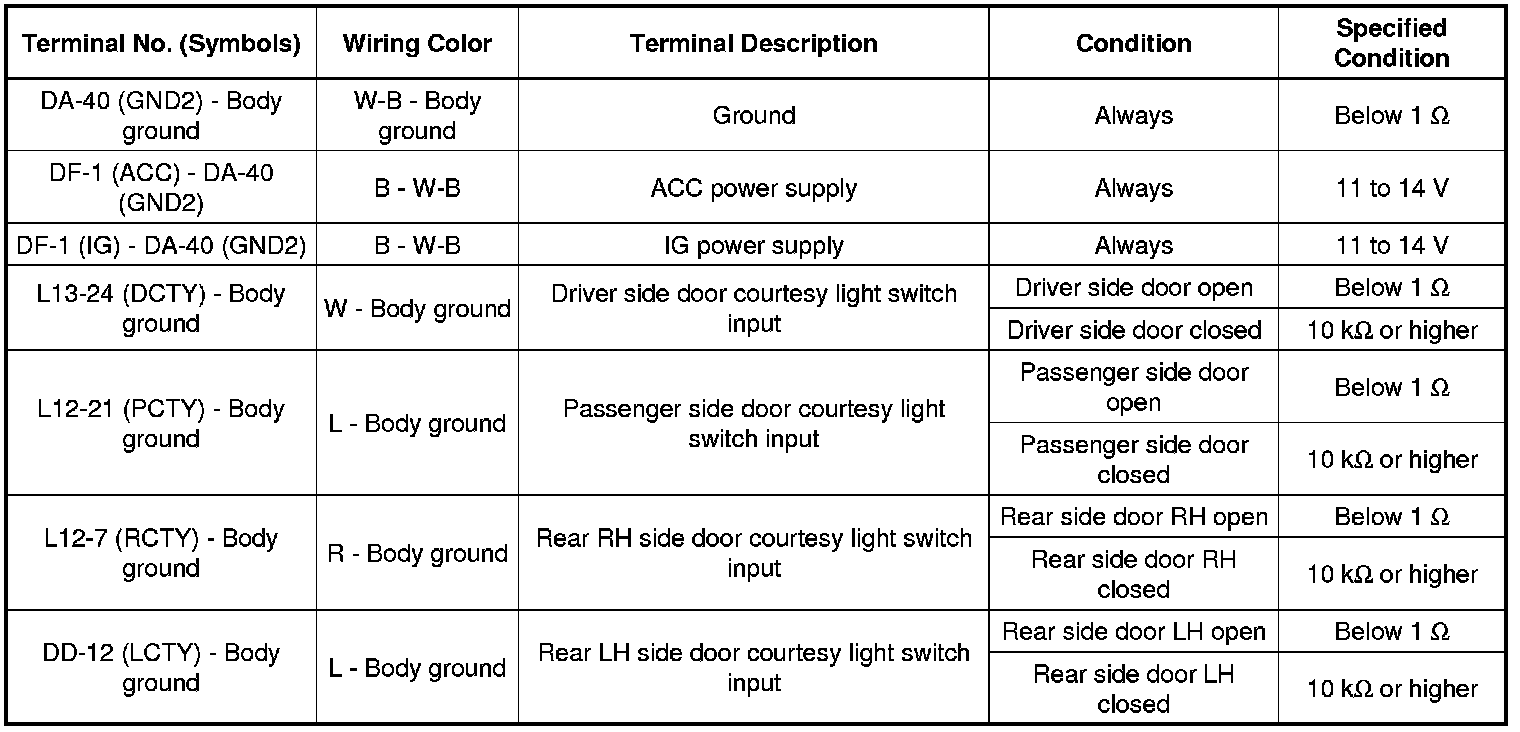 DOOR LOCK: WIRELESS DOOR LOCK CONTROL SYSTEM: TERMINALS OF ECU