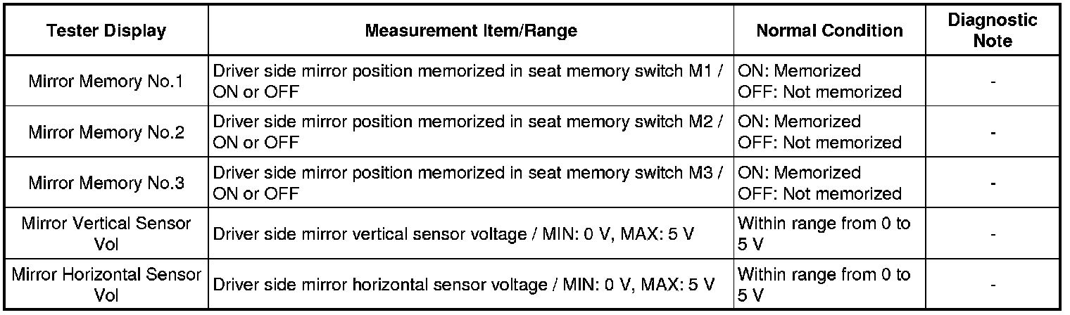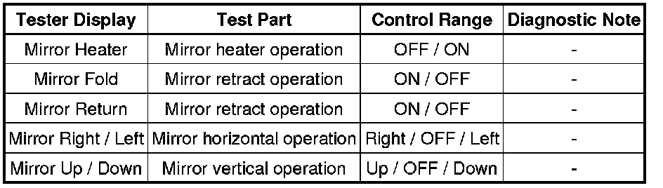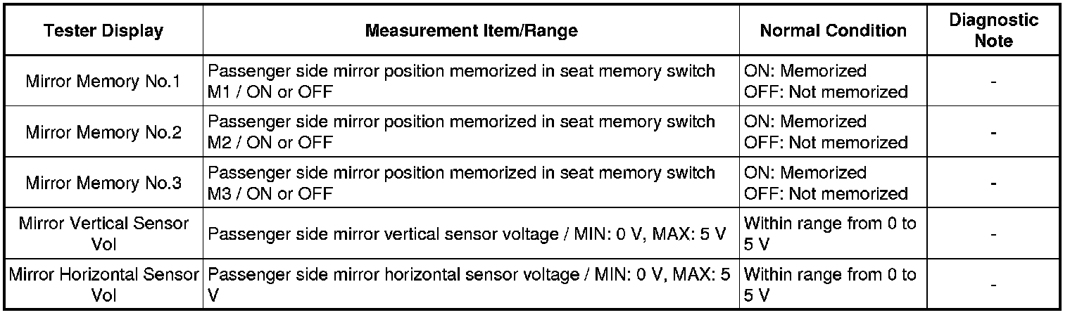 MIRROR: POWER MIRROR CONTROL SYSTEM: DATA LIST / ACTIVE TEST