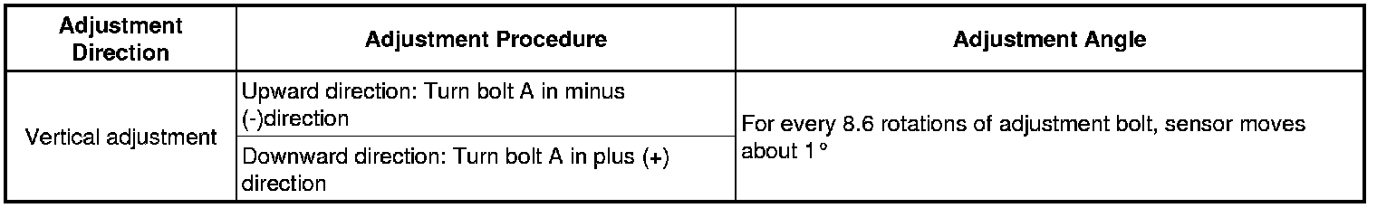If the axis is not as specified, use a screwdriver to adjust bolt B until the divergence of the radar beam axis is 0°.