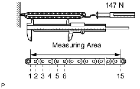 (a) Using a spring scale, pull the chain with a force of 147 N (15 kgf, 33.0 lbf) as shown in the illustration.
