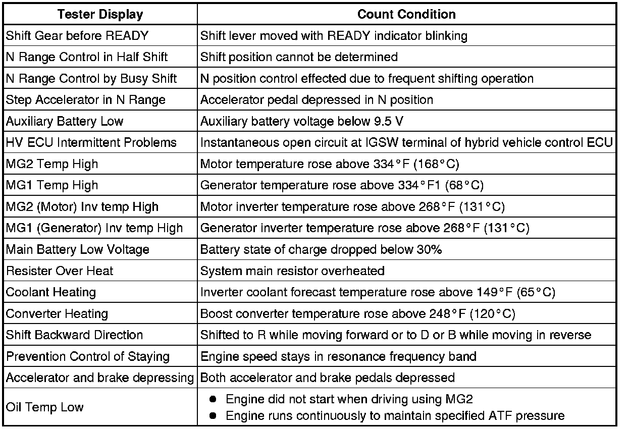L110F HYBRID VEHICLE CONTROL: HYBRID CONTROL SYSTEM: OPERATION HISTORY DATA