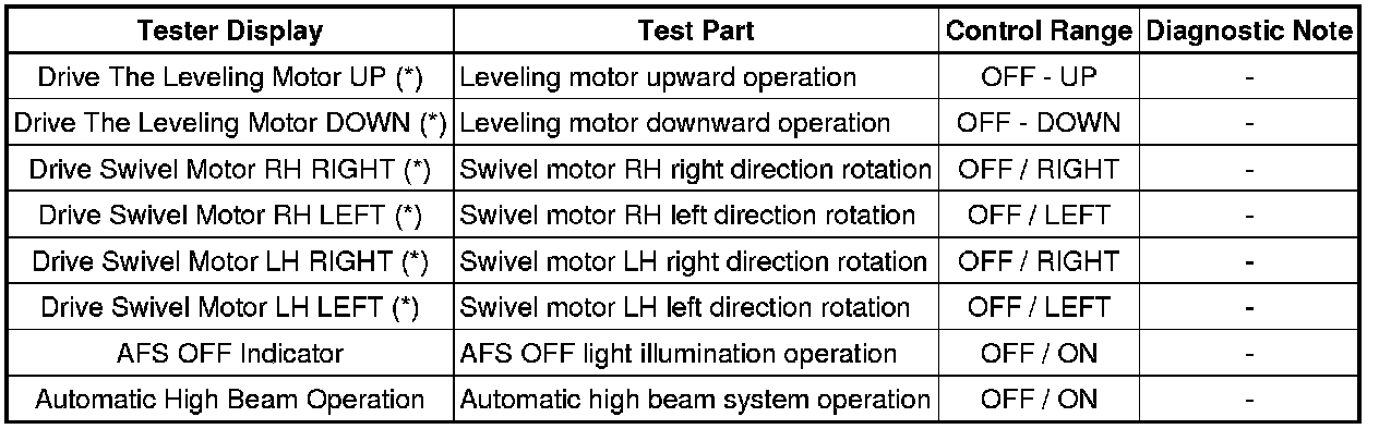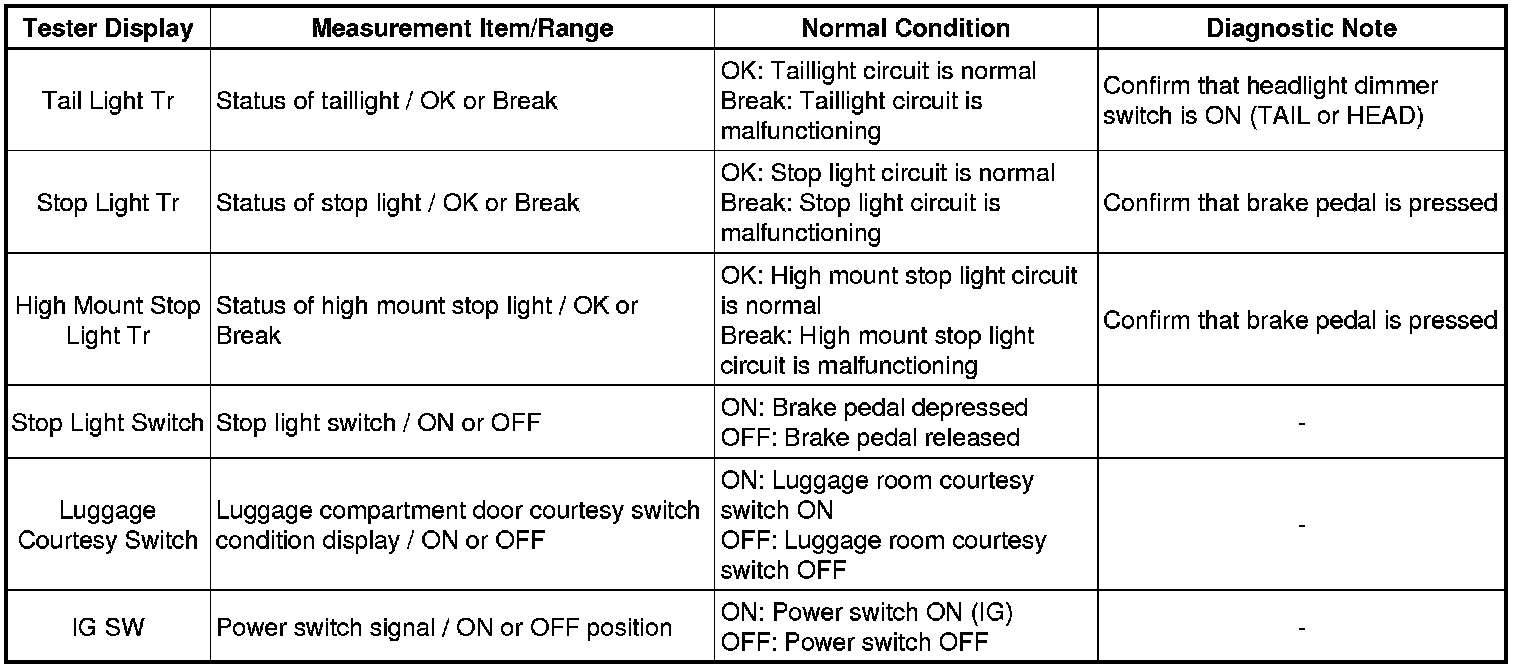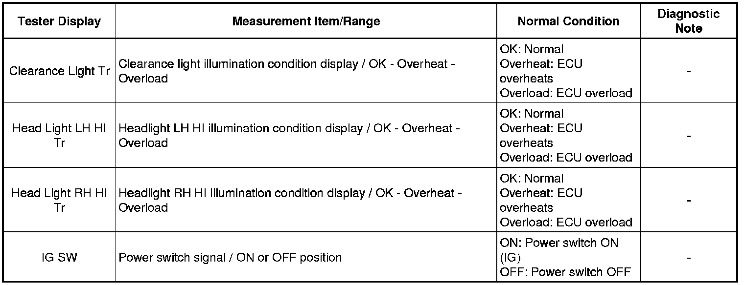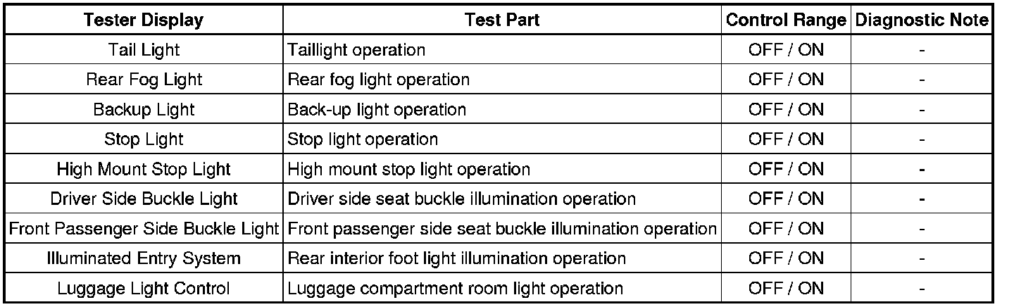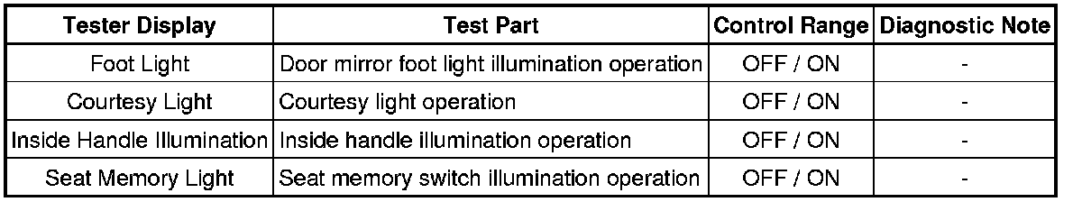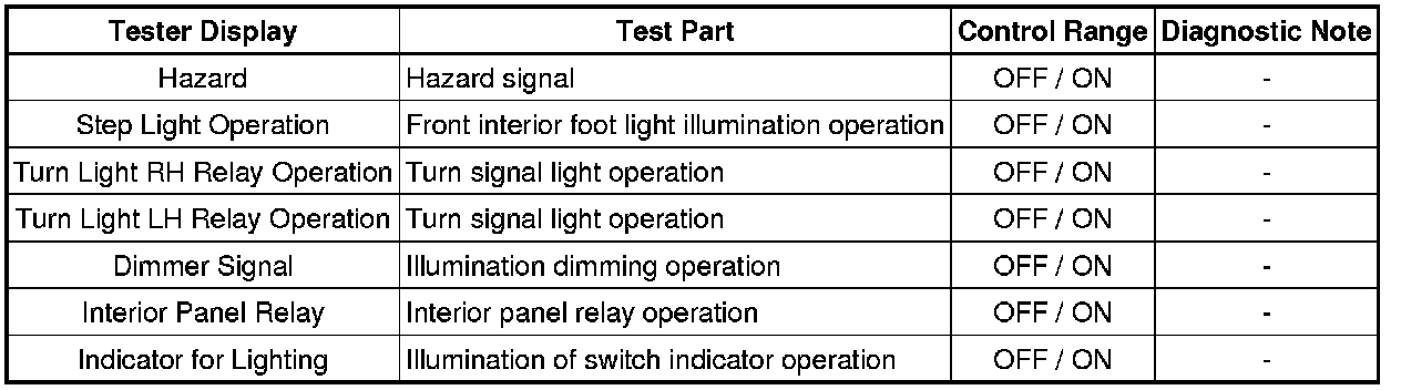 LIGHTING: LIGHTING SYSTEM: DATA LIST / ACTIVE TEST