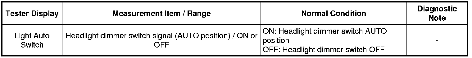 2. READ VALUE USING TECHSTREAM (HEADLIGHT DIMMER SWITCH)