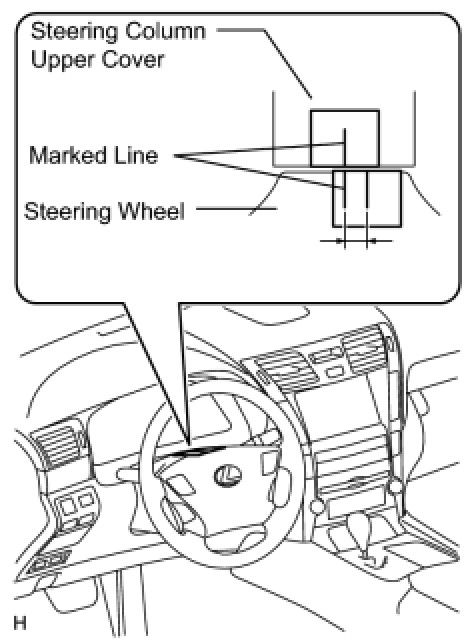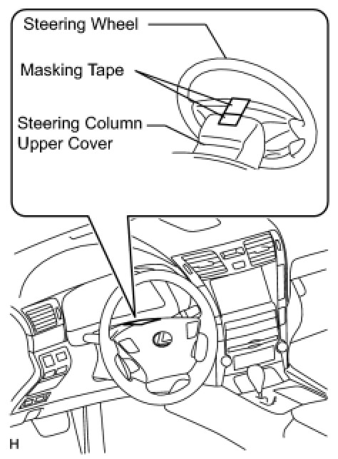 (1) Apply masking tape to the top center of the steering wheel and steering column upper cover.