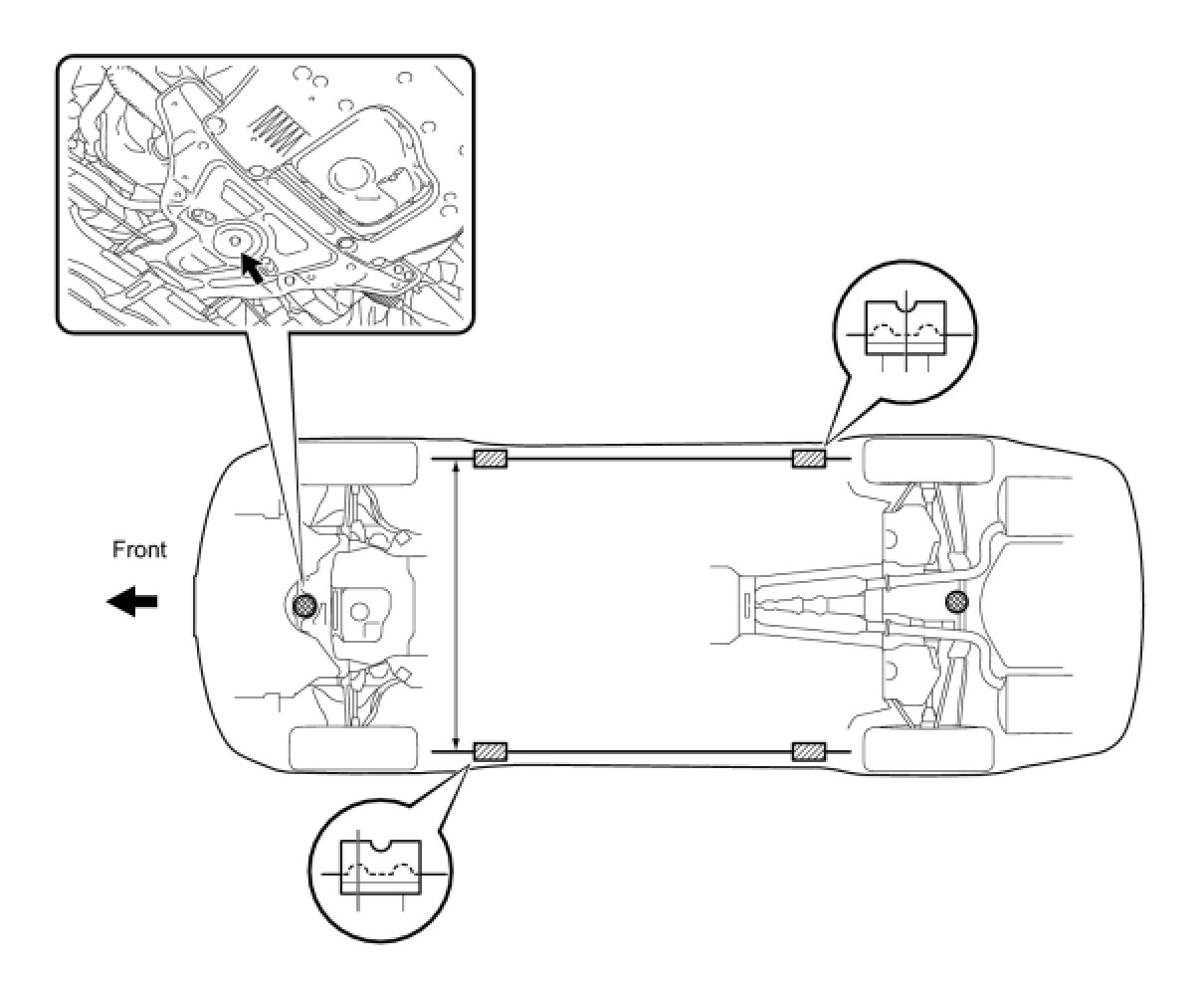 (e) Set the vehicle on the lift as level as possible. Then match the groove of the cradle to the safety stand support locations.