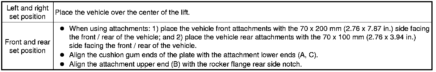 (d) When using the lift, its center should be as close to the vehicle's center of gravity as possible (length of "L" in the illustration should be as short as possible).