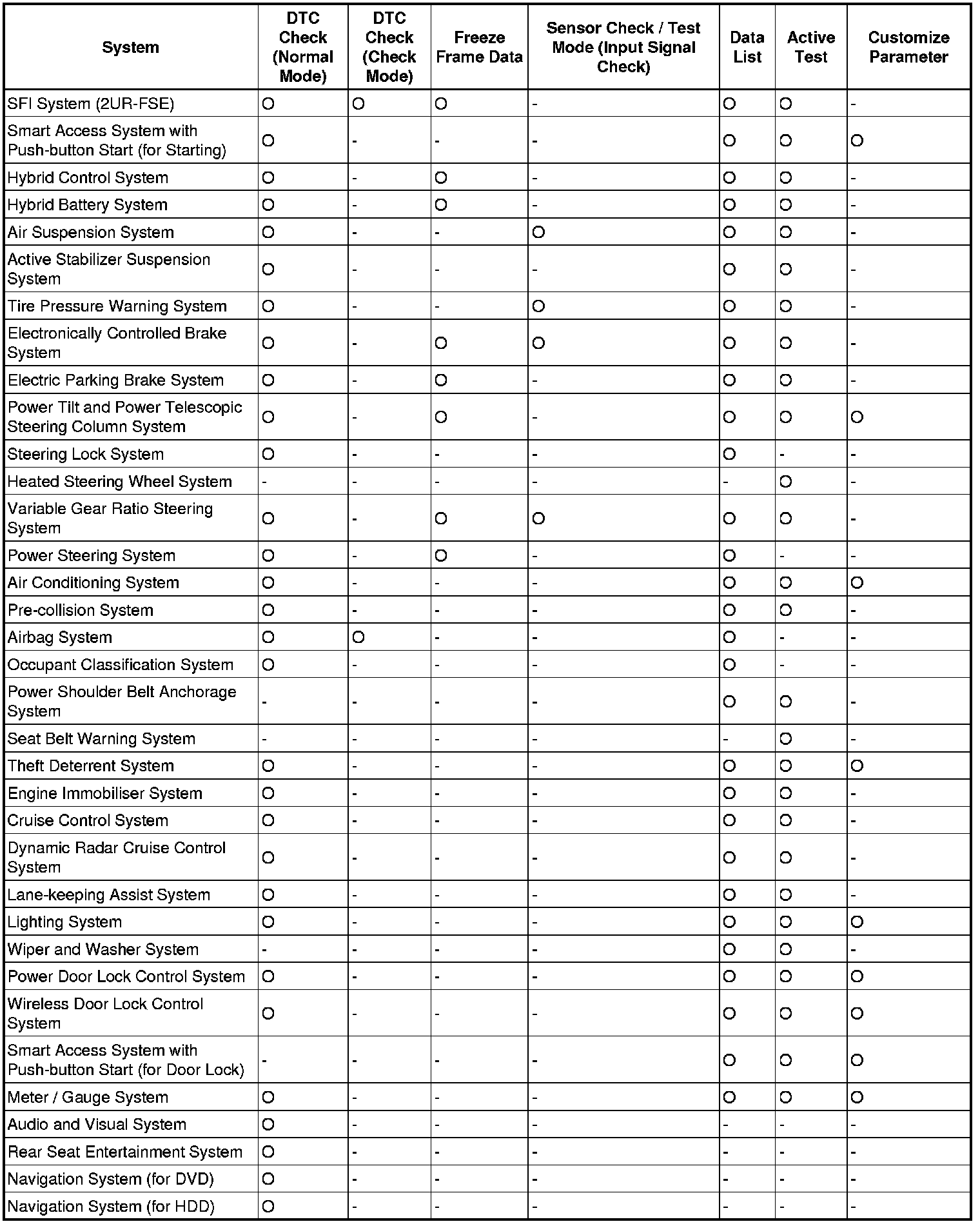 By using these functions, the problem areas can be narrowed down and troubleshooting is more effective. Diagnostic functions are incorporated in the following systems in the LEXUS LS600h L.
