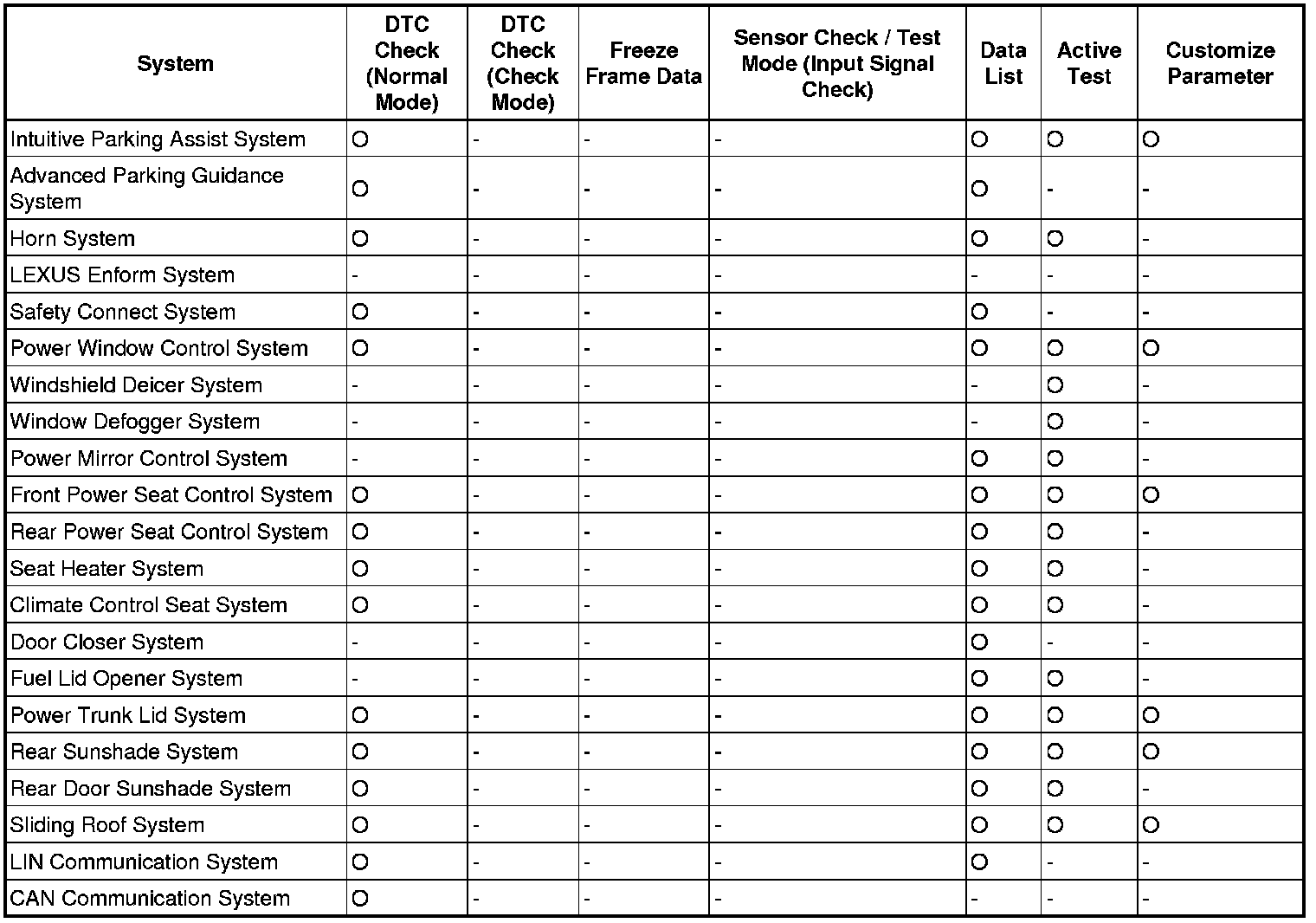 * Another function is the Input Signal Check, which checks if the signals from various switches are sent to the ECU correctly.