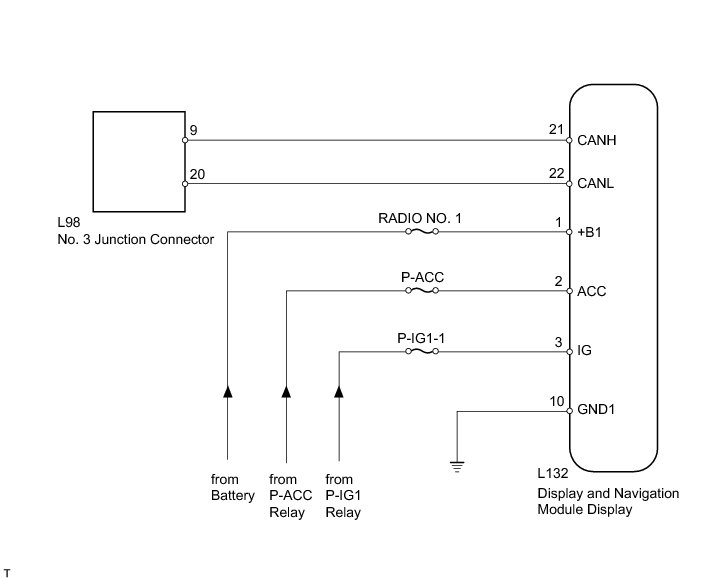 2. CHECK FOR OPEN IN CAN BUS WIRE (DISPLAY AND NAVIGATION MODULE DISPLAY BRANCH WIRE)
