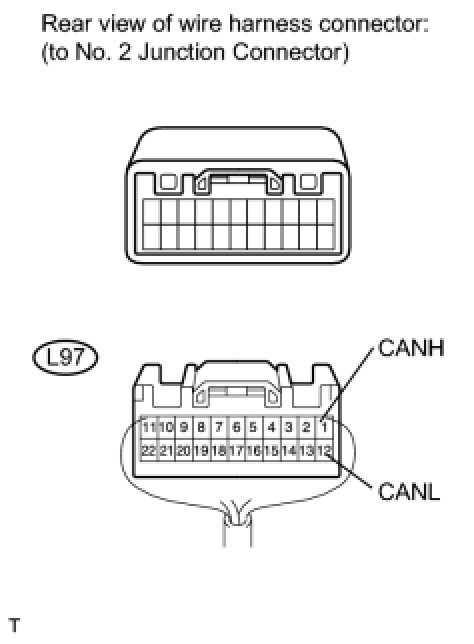(a) Disconnect the L97 No. 2 junction connector connector.