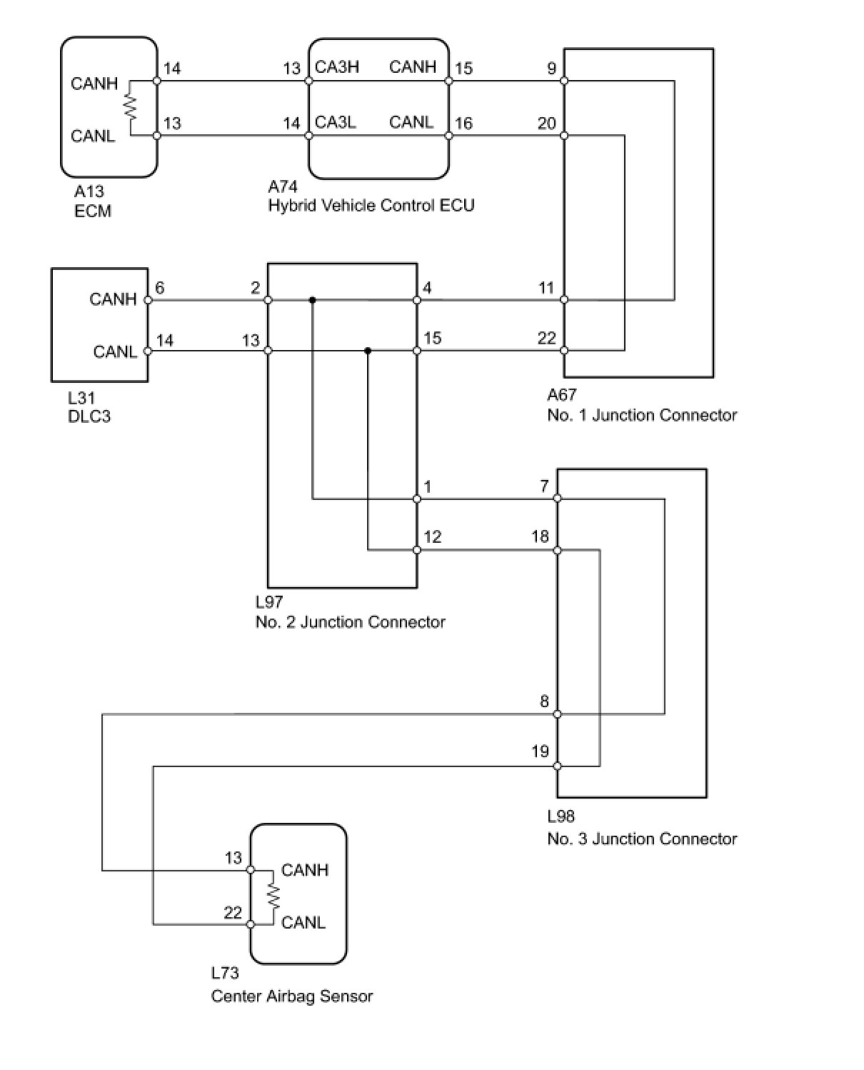 14. CHECK FOR OPEN IN CAN BUS MAIN WIRE (NO. 3 JUNCTION CONNECTOR - CENTER AIRBAG SENSOR)