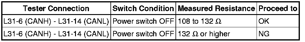 When the measured value is 132 Ohms or higher and a CAN communication system diagnostic trouble code is output, there may be fault besides disconnection of the DLC3 branch wire. For that reason, troubleshooting should be performed again from "HOW TO PROCEED WITH TROUBLESHOOTING" How to Proceed With Troubleshooting after repairing the trouble area.